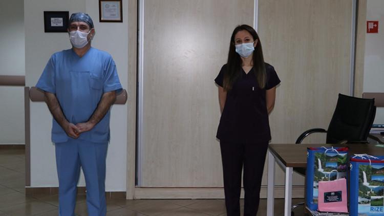 Rize'de 2 hemşire koronavirüsü yenerek alkışlarla göreve döndü